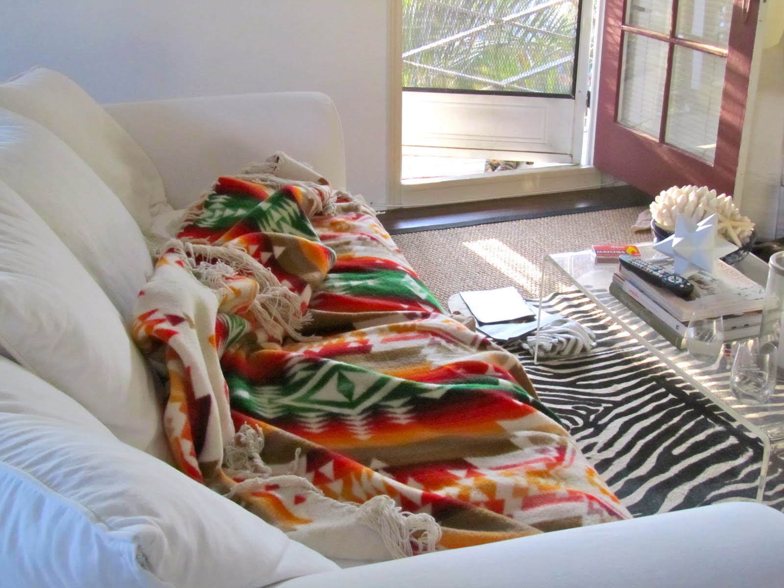Naps on the couch with the world's best blanket while the cat scratches just outside the door.